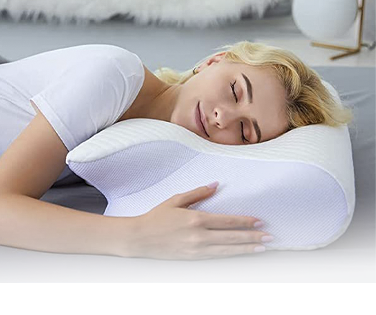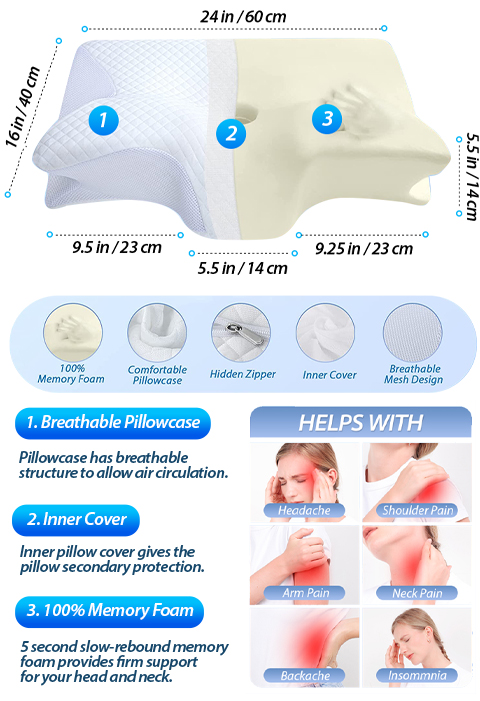 There are specific grooves that allows your arms to go under for comfortable sleep. You can lay on your stomach and warp your arms around the wings for perfect support. This cervical pillow for neck pain is suitable for all kinds of sleeping posture.